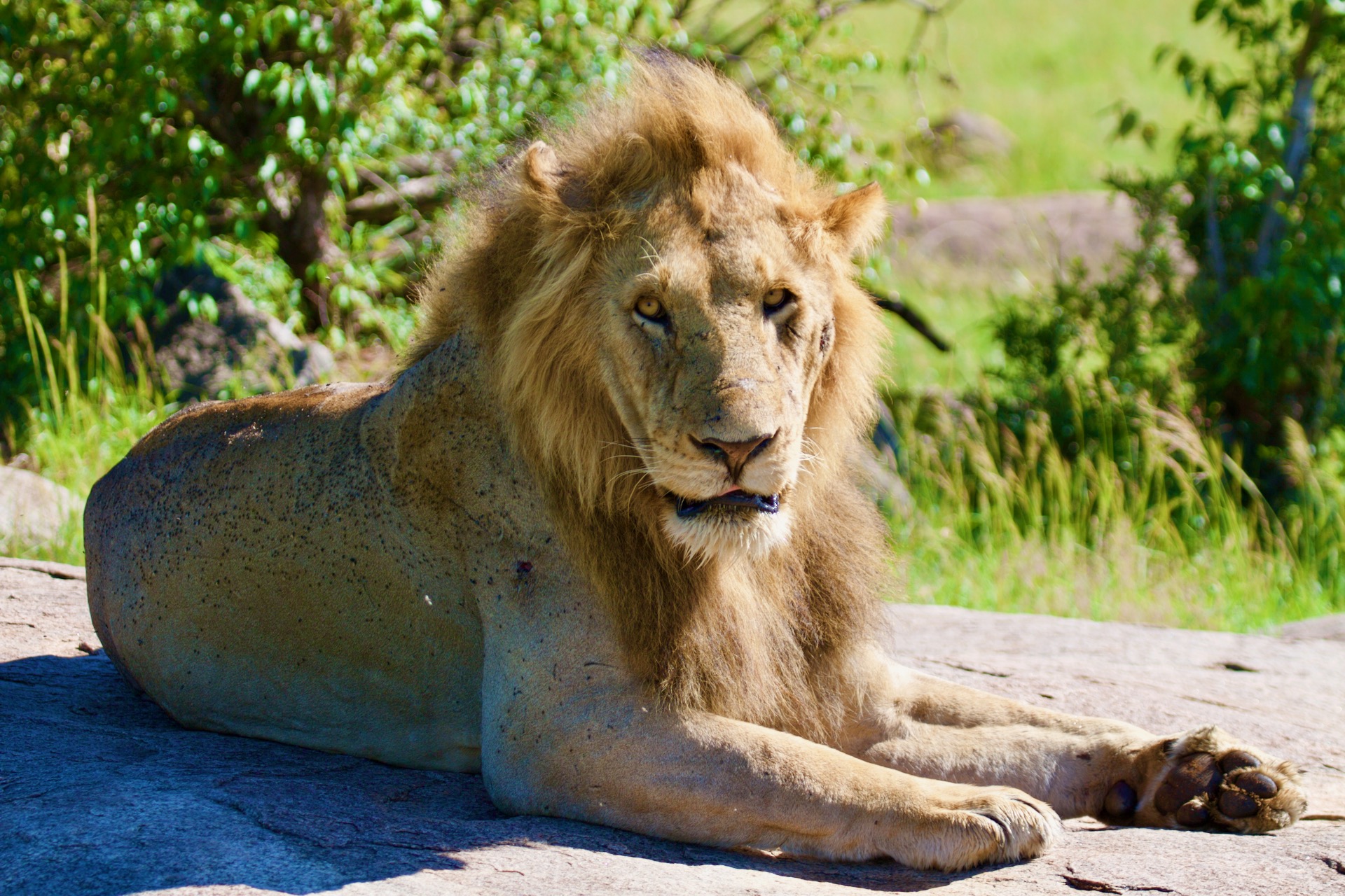 Then a bushy mane appeared above the other side of the rock. The lion walked up on to the rock and towards us. Four or